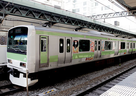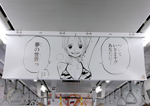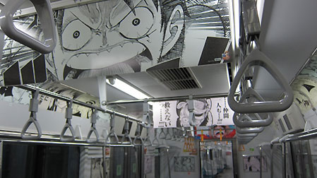 ワンピースのコミックス累計2億部突破記念キャンペーンの一環で、「ゴムの手線」と命名。先頭と最後尾の車両は、2月初旬に東京・渋谷をジャックしたときのポスターを掲載した。残りの車両は2両目から順にルフィ、ゾロ、ナミ、ウソップ、サンジ、チョッパー、ロビン、フランキー、ブルックの各キャラクターをテーマにしている。集英社は「マナーを守って楽しんでほしい」と話している。
