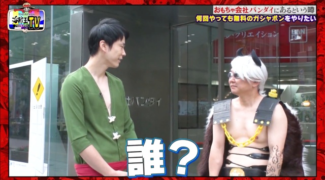 週刊少年ジャンプ作品史上初の地上波冠バラエティ番組「ワンピースバラエティ 海賊王におれはなるTV」の放送第16回。今回はMCのかまいたちが「ワンピース」のフィギュアや玩具を手がけるバンダイの本社ビルを訪れました。