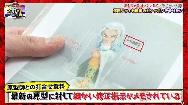 修正指示がメモされた、原型師と開発担当の打ち合わせ資料まで公開されています。改善されたかどうかはさておき、このマルコは、眉毛やヒゲの塗り、口の表情などの修正があったようです。第1弾のルフィについては、栄ちゃんの徹底監修を受けたと言います。