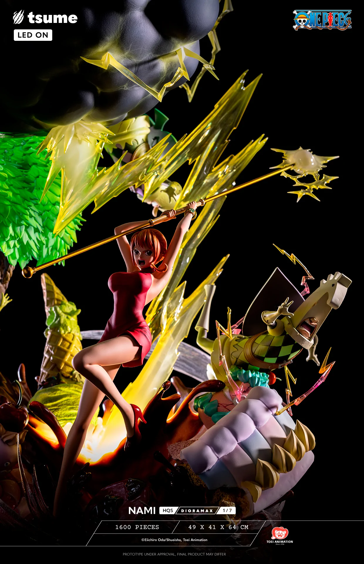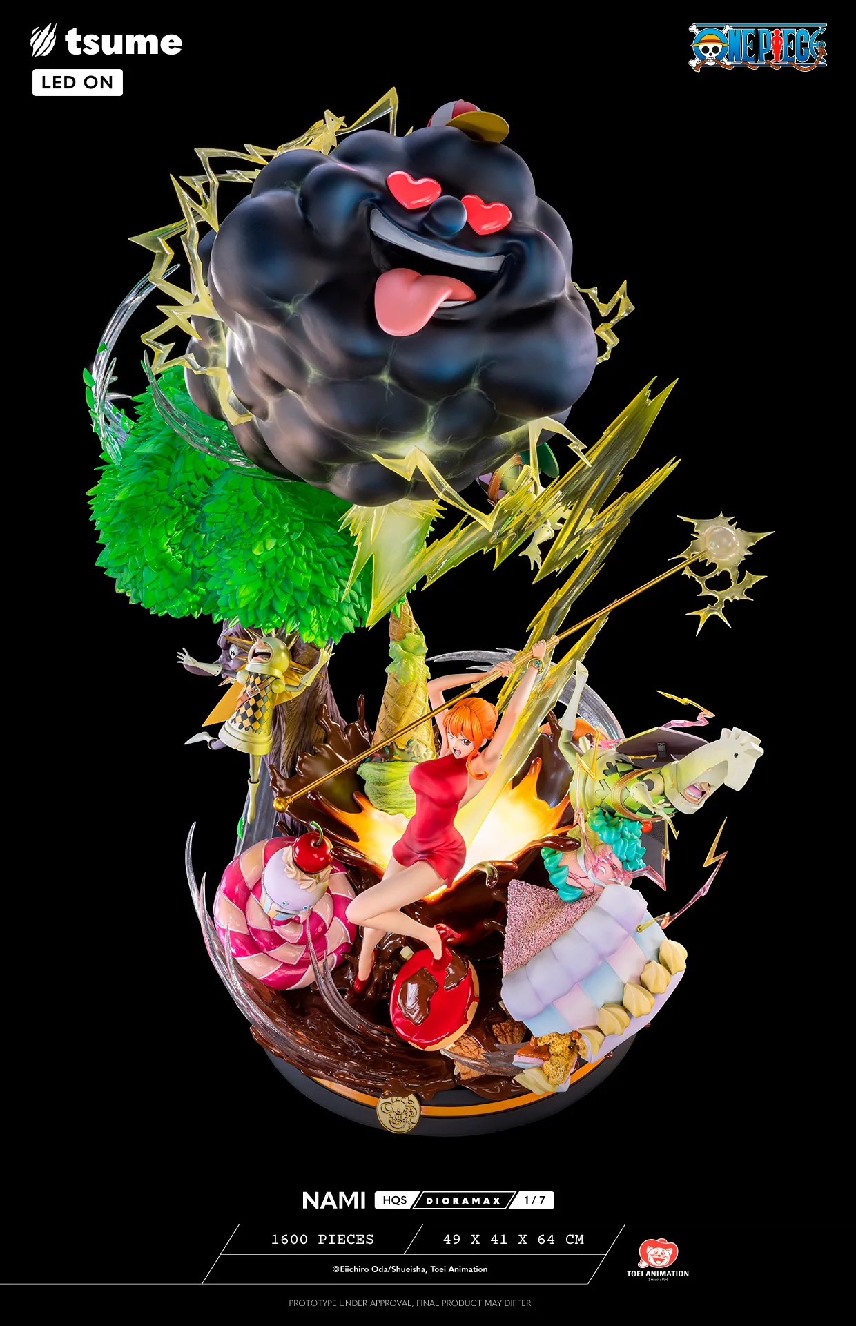 フィギュアはホールケーキアイランド編にて、ゼウスが”天候の卵”を食べたシーンがモチーフになっています。稲妻が落ちている部分にLEDが内臓されているみたいですが、あまり効果的には見えません。