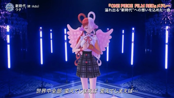 2度目の出演となるウタは今回はスタジオステージにて、新衣装で「新時代」「逆光」「世界のつづき」のメドレーを披露しました。