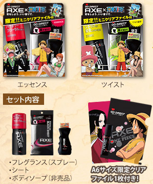 スプレータイプのフレグランス、洗顔シート、ボディソープ、ミニクリアファイルのセット