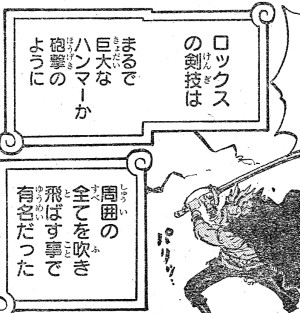 興味深いのは、ロックスは剣士というわけではなく、本話の描写では武器を選んでおらず、銃や斧、ステゴロなんでもござれというオールラウンダーだったようです。ワンピースカードに例えると属性に少なくとも【斬】と【射】がつきそうなものですから、ワンピースの中では珍しいキャラクターです。