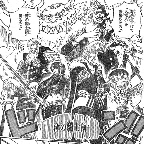 シャクヤクを奪還するためロックス海賊団、続いてロジャー海賊団が上陸。大会どころではなくなり、神の騎士団が出動します。