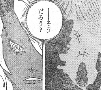前回、姿を現した後に確認することができなかった背中の翼も本話(1180話)ではっきりと確認することができます。翼の形状(羽根・天使の翼)と色(黒)は、褐色の肌と白髪と合わせて、