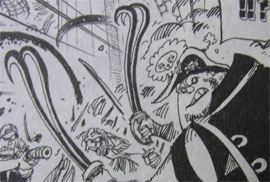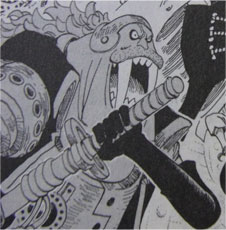 エース奪還時は素手でしたが、逃走時は大きな刀を持ってます。