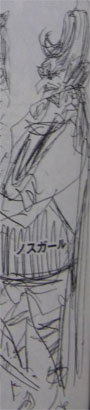 スケッチの武器は鎌でした。左手に持ってる柄がおそらくそうです。