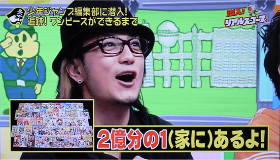 番組冒頭、『ONE PIECE』の紹介で累計発行部数が2億部を突破していることに触れられると、スタジオのワンピファンである上地雄輔さんが