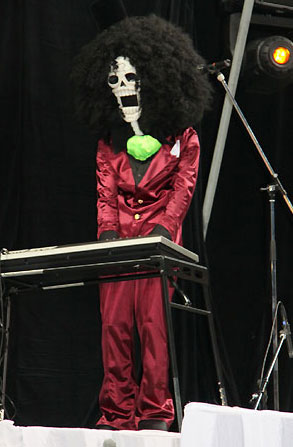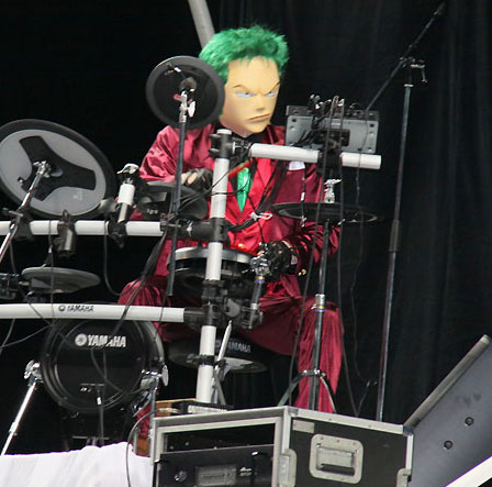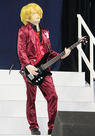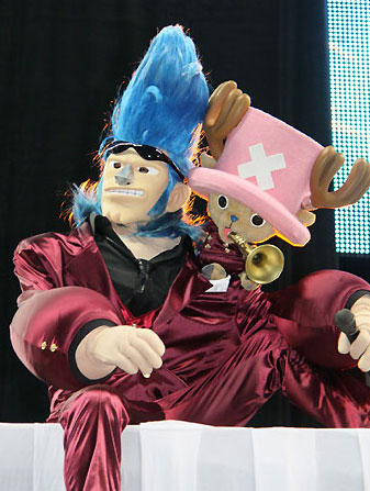メンバーはそろって紫のステージ衣装に身を包み、ゾロはドラム、ブルックはキーボード、サンジはベースを構え、アニメで流れる名曲の数々を演奏。麦わら帽子をかぶったダンサーがステージを盛り上げた。ライブには4人組ロックバンド「THE ROOTLESS」も出演し、デビュー曲でもあるアニメ主題歌「One day」を披露している。