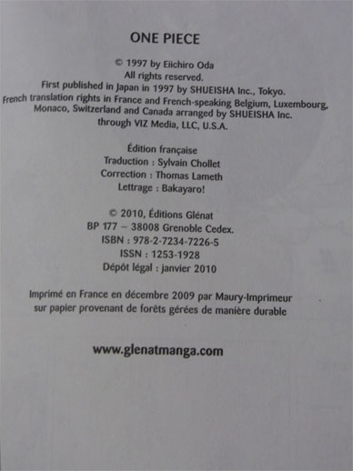 Glenat というところになっているため、当然JCのパイレーツロゴはなし。