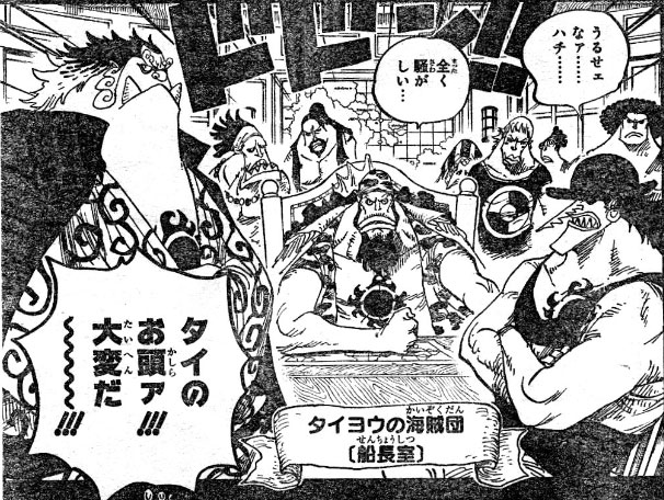 フィッシャー・タイガー(タイの魚人)船長率いる海賊団。てっきりトラフグかと思いきや鯛の魚人でした。
