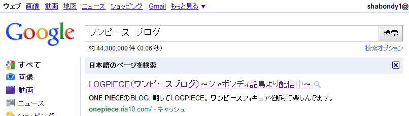 「ワンピース ブログ」で検索すると・・・