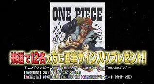 ドライブがもっと楽しくなる「トレジャーハント機能」を搭載!秘密のお宝はルフィの「麦わら帽子」、ゾロの刀!ウソップのパチンコをはじめ、合計10種類!全国1000カ所に隠された秘密のお宝10種類をすべて集め同封のはがきを送ると抽選で、サイン入りのお宝DVDセットをどーんとプレゼントしちゃいます!