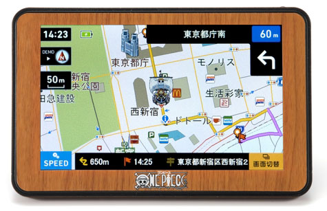ナビをしてくれるのは”ナミ”。サウザンド・サニー号を動かすのは航海士の役目!ワンピースで航海士といえば”ナミ”!しかも、合計147パターンのキャラクターボイスが内蔵されているんです。