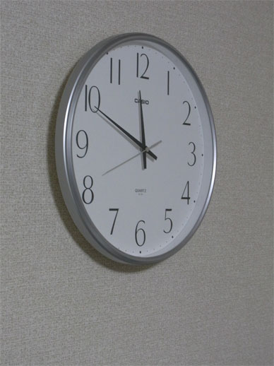 カシオのなんの変哲もない壁時計。直径約30センチ。