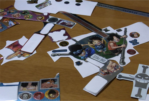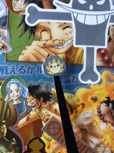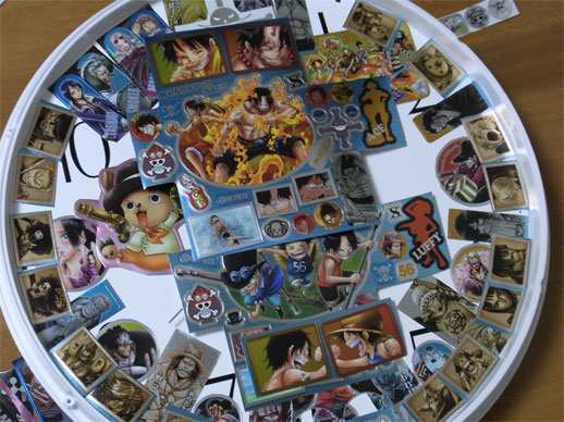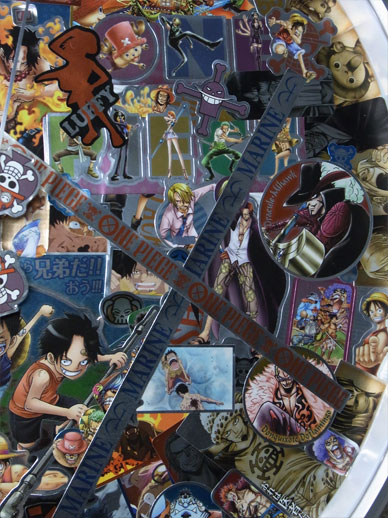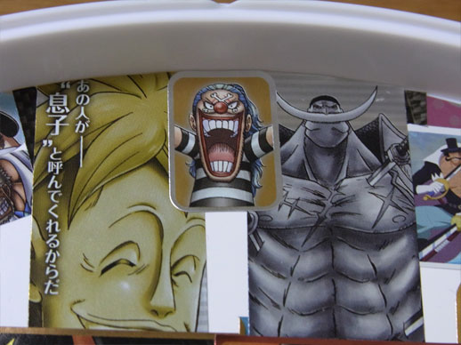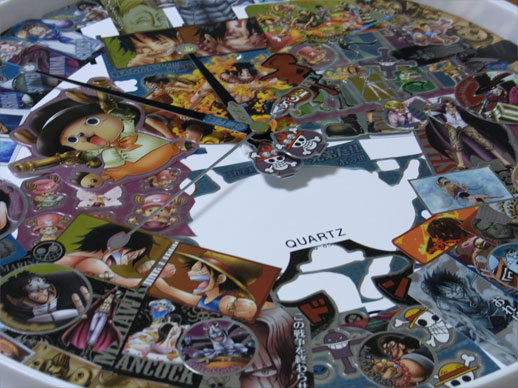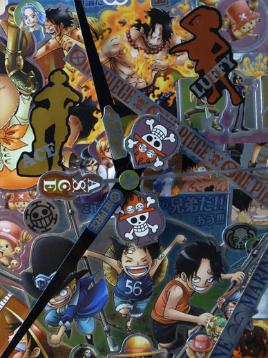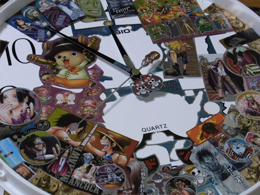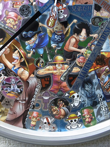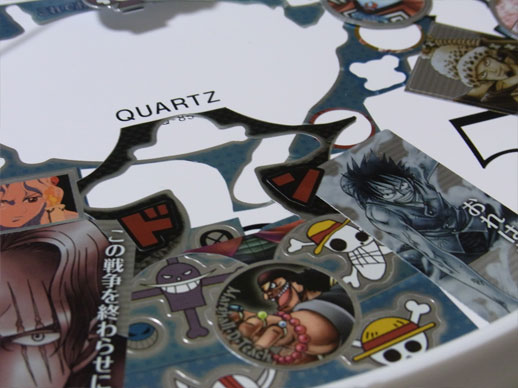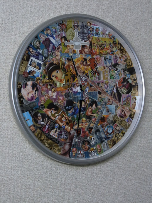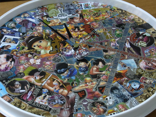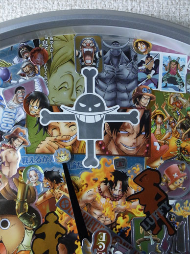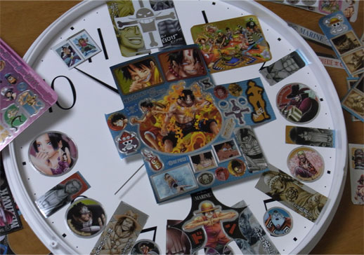 先日手に入れたメモリアルメタルアートの全5種5枚を使って、この平凡な壁時計をワンピース仕様の
