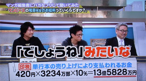 「日本一売れている漫画家「ワンピース」の尾田先生のお給料っていくらですか?」