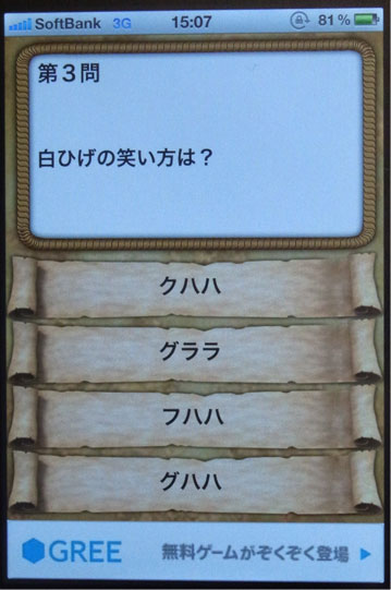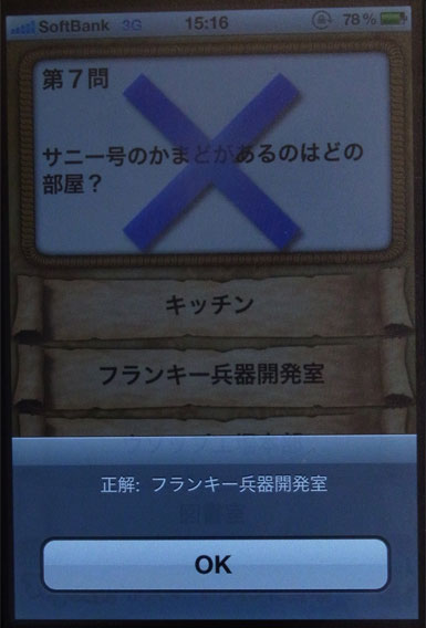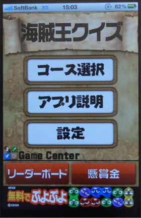 iPhone の無料アプリ「海賊王クイズ」をやってみました。