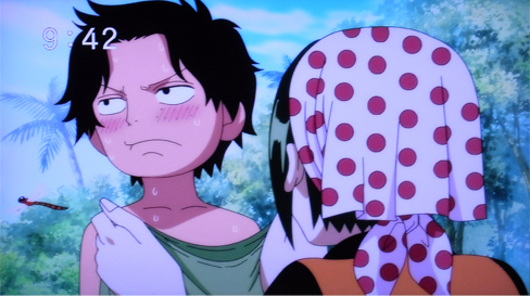 原作のコマ(第485話15ページ)にもあるエース照れシーン。
