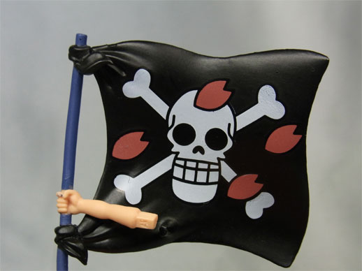 ルフィの頭で大半が隠れてしまいますが、しっかりヒルルクのドクロがプリントされています。