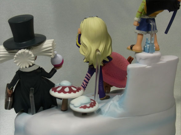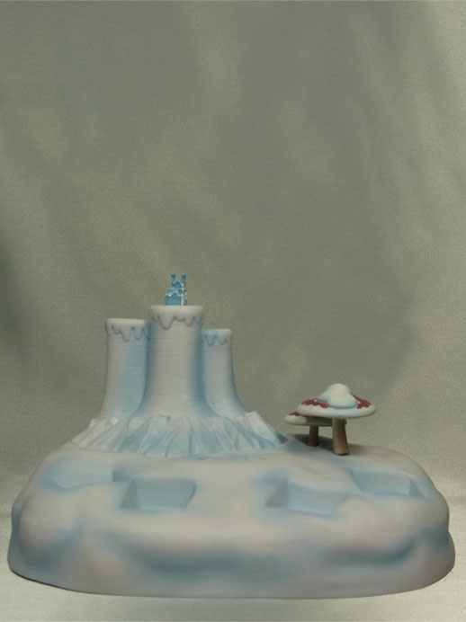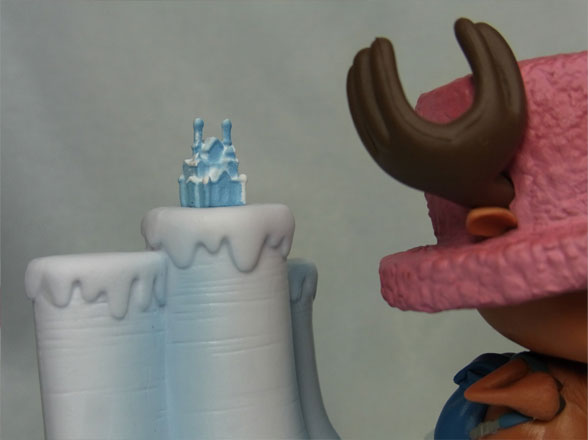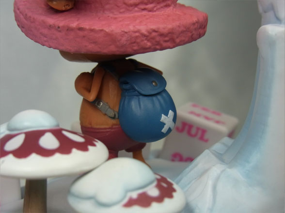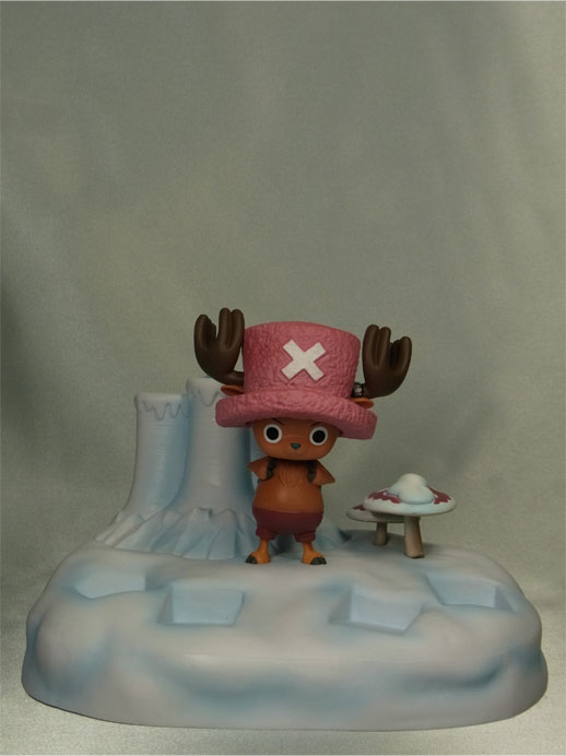 チョッパーフィギュアの台座は全体がそのまま”冬島”をイメージして作られたジオラマで、アミウダケが生え、頂上にドラム城を構えたドラム山がそびえ立っています。