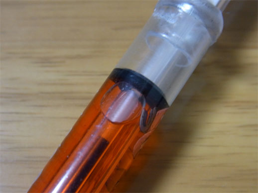 赤い染色液が入っています。