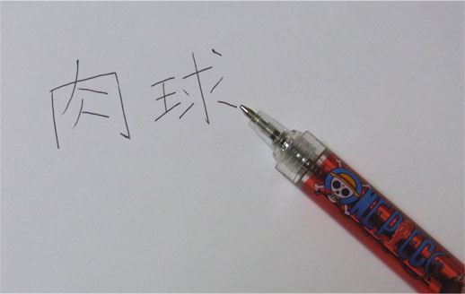 この通り分解できるので、ノック式の取り替えインクを付け替えればいつまでも使えます。チョッパーのプリント部分が剥がれることは逃れられないでしょうが・・・。