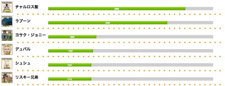 中間結果ではわずか8票差で6位につけていたシュシュが5位のリスキー兄弟を差し切りました。上位3キャラクターの順位は結局最初から最後まで不動でした。