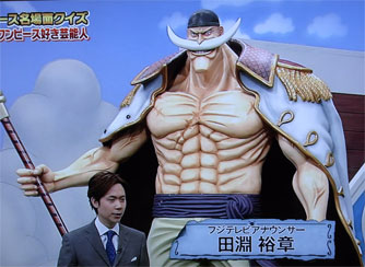 MCは田淵裕章アナウンサーですが、実はこの方もワンピース未読で、後ろに立つ白ひげについて聞かれると「