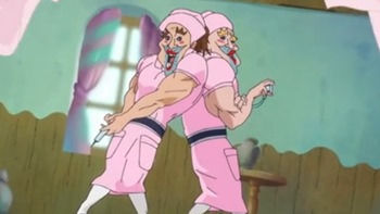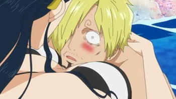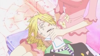 530 | 魚人島の王 海神ネプチューン! | <改変> ・ESを飲んだ者は目が赤くなる <original> ・スプラッシュ&スプラッタが看護士姿でサンジを介抱する | 611話 |
