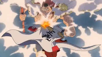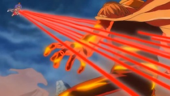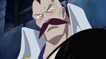 484 | 海軍本部崩壊! 白ひげ言葉なき怒り! | <改変> ・赤犬の"冥狗"は白ひげの腹に当たり、顔の左半分は削り取られない(胸の傷穴の下にもう一つ傷穴が開く)。左のヒゲは直前のアニメオリジナルの攻撃(溶岩の拳を連続で射出)で吹き飛ぶ。 | 575-576話 |