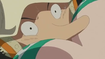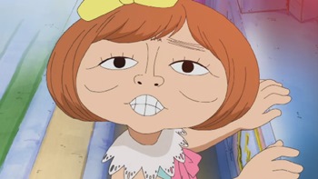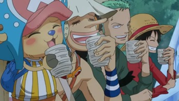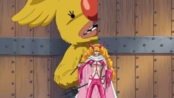 419 | 仲間達の行方 巨鳥の島と桃色の楽園! | <改変> ・チョッパーは、鳥の巣から落下して倒れている時ではなく、トリノ王国の民に鈍器で頭を殴られて捕らえられる。 <補足> ・サンジが目覚めてからカマバッカ王国の実体に気付くまでが描かれている。サンジは最初にエリザベスと出会い、夢うつつのままエリザベスが男と気付かずに惚れる。 | 523-524話 |