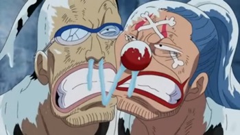 478 | 約束のために!! 激突! ルフィとコビー | <改変> ・ルフィに敗れ気を失ったコビーは口から泡を吹かない ・白ひげの背後の守備に駆けつけたジンベエの体に鎖が巻き付いている ※直前、白ひげがピンチの時、ジンベエは海兵に囲まれ四方八方から鎖で取り押さえられていた(アニメオリジナル) | 569話 |