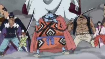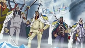 458 | 海軍本部直前回想特別編 集結! 三大将 | <補足> ・エースの処刑3時間前(正午)、海軍本部で待機する王下七武海、三大将に招集がかかる。 ※王下七武海と大将が登場したエピソードの編集 | 549話 |