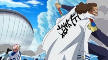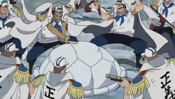 474 | 処刑執行指令下る 包囲壁を突破せよ! | <補足> ・オーズの道を真っ先に進んで迎撃されたルフィは海に落ちジンベエに救出される | 565話 |
