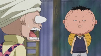 427 | 映画連動特別編 狙われた小さな東の海 | <original>「リトル・イーストブルー編」 ・ルフィ達が村から歓迎を受けていたところ、アミーゴ海賊団が村を強襲する。アミーゴ海賊団への指令はシキの下から逃げた大カブトを捕獲することだった。 ・村人「メンドウ」「ミツボシ」「ルイジア」、ナミの私設ファンクラブ「オレナミ団」登場 <補足> ・ゼフの料理の味を盗む子供の頃のサンジの様子 | - |