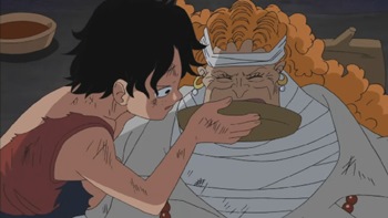 465 | 勝者だけが正義 発動! センゴクの作戦! | <補足> ・幼少期、エースとルフィがガープと一緒に食事した様子 | 555-556話 |