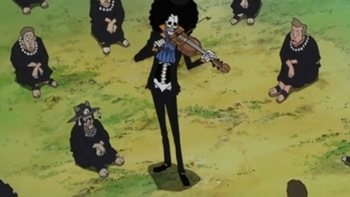 526 | 海底火山噴火! 流されて魚人島 | <改変> ・ルフィ達が戻ってきた際、ブルックが「帰還の唄」をアカペラで歌っている <original> ・ロビンがフライング・ダッチマン号のスケッチをしている | 606-607話 |