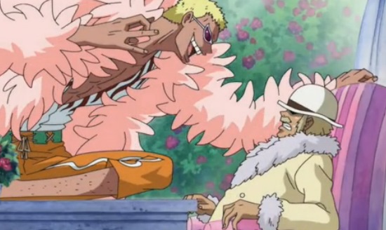 415 | ハンコックの告白 姉妹の忌わしき過去 | <改変> ・17年前、ゴルゴン三姉妹が売られた人間屋にドフラミンゴのシンボルがある <補足> ・人攫いにあった時のゴルゴン三姉妹が描かれている | 521話 |