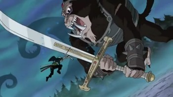 515 | まだまだ強くなる! ゾロ船長への誓い | <original> ・ミホークの下でのゾロの最初の修行は「ヒューマンドリルの長」を倒すこと | 596-597話 |