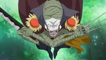 444 | さらなる混乱! 黒ひげ・ティーチ襲来 | <改変> ・ハンニャバルの子電伝虫がオリジナルデザインに変更 ・シリュウに繋いだ電伝虫がシリュウ仕様?のデザインに変更 | 541-542話 |
