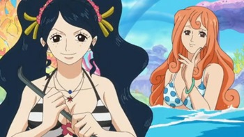 531 | 竜宮城! 助けた鮫に連れられて | <original> ・鮫を飼っていると聞いたウソップの人魚姫のイメージ <補足> ・竜宮城に入門する前、ネプチューンがルフィとナミにバブリーサンゴを渡している | 612話 |