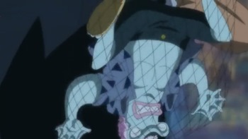449 | マゼランの奇策! はばまれた脱獄計画 | <補足> ・ルフィにドルドルの手足をつけたMr.3の技名は"キャンドル鎧(アーマー)" | 545-546話 |