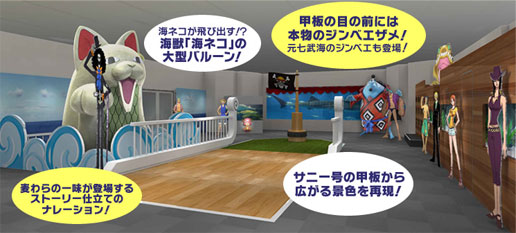 ワンピースの数々の名シーンを再現したブースが出現!ワンピースの世界を「見る」のではなく、シーンに入ることによりより深くワンピースの世界を体感できます。もちろん記念撮影可能!道具や武器を身につけてワンピースキャラクターになりきろう!