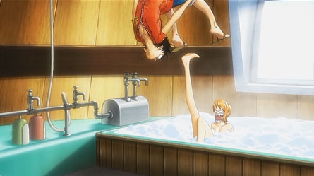 胸を隠して珍しく恥ずかしがるナミ