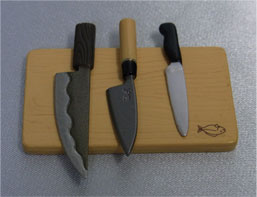 リーメント製の包丁(右2つ、食玩)と比較。