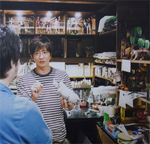 栄ちゃんの作業机に座る木村さん