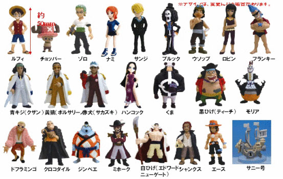PEPSI NEX(ペプシ・ネックス)のおまけとしてONE PIECEフィギュアコレクションが登場!フィギュアと台座がセットになっています!ラインナップはルフィ、チョッパー、ゾロ、ナミ、サンジ、ブルック、ウソップ、ロビン、フランキー、青キジ、黄猿、赤犬、ハンコック、くま、黒ひげ、モリア、ドフラミンゴ、クロコダイル、ジンベエ、ミホーク、白ひげ、シャンクス、エース、サニー号の24種!