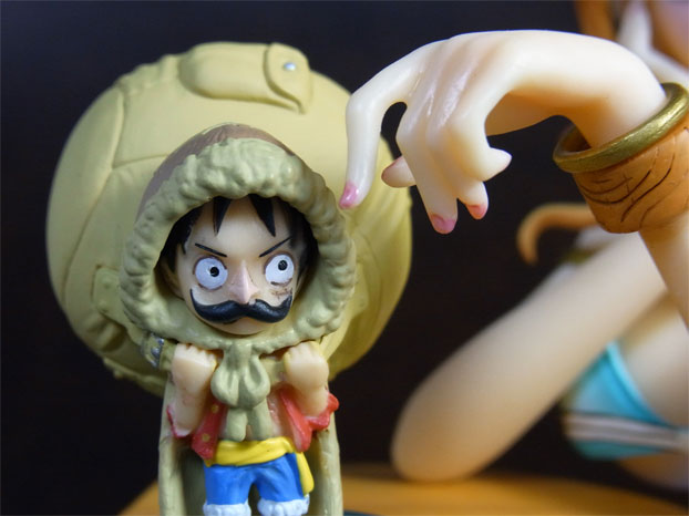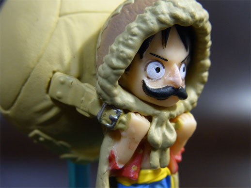 ハンコックのフードコートを着用し、鼻メガネで変装したルフィの立体化。