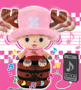 音楽プレイヤーやパソコンにつなぐと、音を再生している最中は、その音量に応じてチョッパーマンの上半身が左右に動きます。音楽が鳴るとダンスを始めるキュートな動きと、ふわふわのやわらかいぬいぐるみ素材が、チョッパーマンのかわいさを引き立てます。ボリュームのある大きさなので存在感もあり、寝室やリビングにおいてもちょうどいい、インテリアサイズになっています。